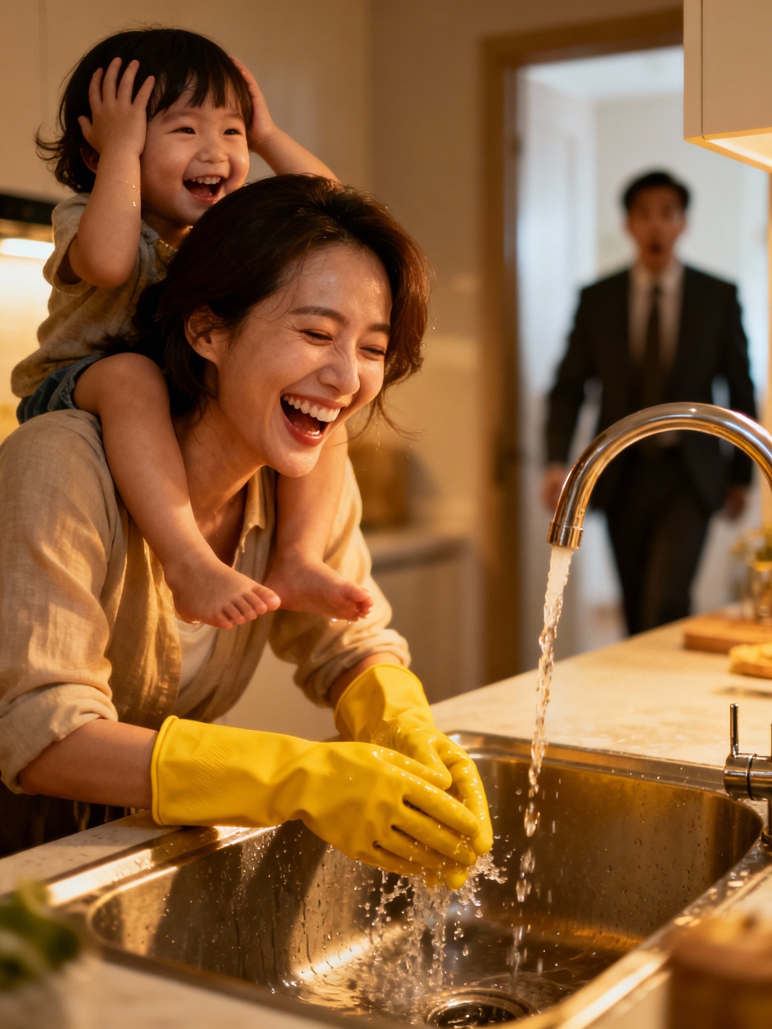 Ava zat op een stevige houten stoel, haar kleine handjes verzonken in schuimend water naast een jonge vrouw langs wie Michael gewoonlijk zonder het te merken langsliep. Paige Collins, de nieuwe huishoudster, lachte zachtjes terwijl ze Ava's handen over een gerecht leidde.