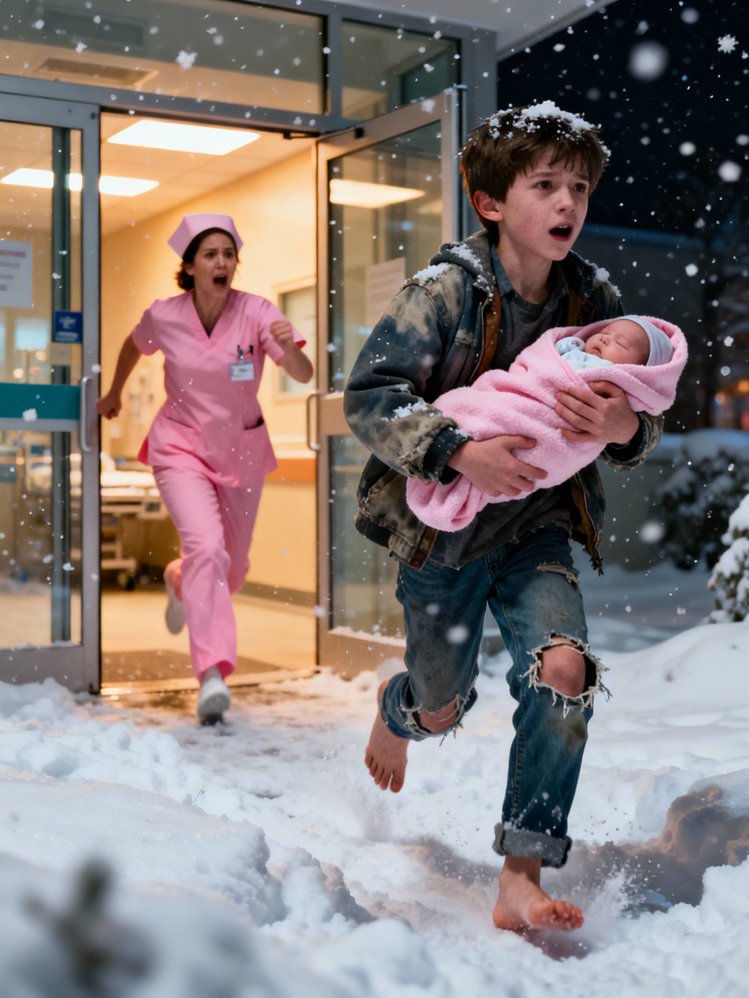 Het was net na 1 uur 's nachts toen de jonge Theo Bennett de spoedeisende hulp van het St. Catherine's Hospital in Vermont binnenliep, zijn kleine zusje dicht tegen zich aan houdend, gewikkeld in een dun, vervaagd gele deken. Een scherpe wintervlaag gleed achter hem binnen toen de deuren opengleden en langs zijn kleine, blote voeten streek.