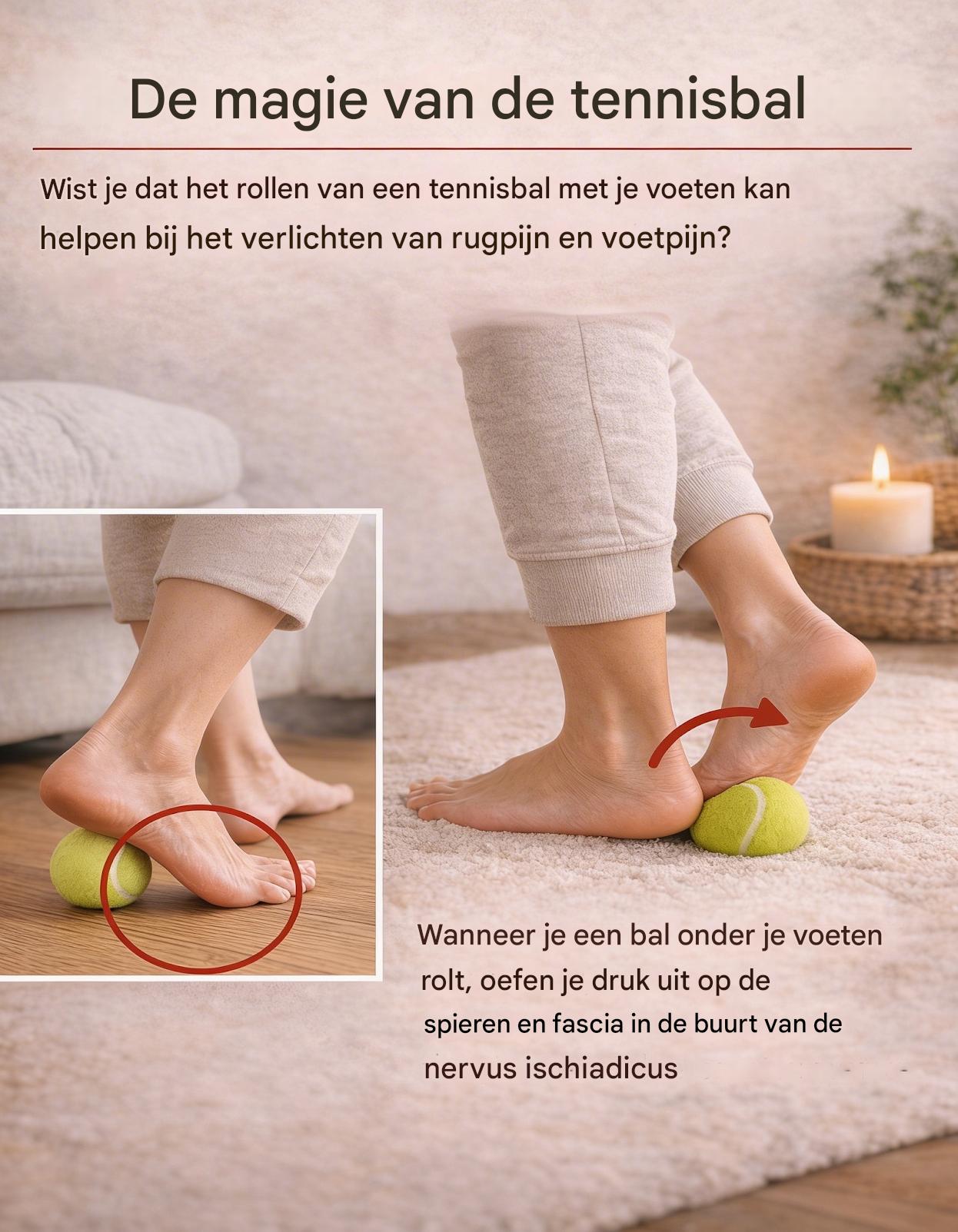 Na een lange dag staan of lopen ervaren veel mensen ongemak in hun voeten dat kan uitgroeien tot een strakke spanning in de kuiten en onderrug, waardoor dagelijkse bewegingen uitdagender aanvoelen. Dit veelvoorkomende probleem ontstaat vaak door langdurige activiteit of onjuiste ondersteuning, wat leidt tot een opbouw van spanning die de houding en het algehele comfort beïnvloedt. Gelukkig kan een eenvoudige thuisaanpak met iets eenvoudigs als een tennisbal een oplossing bieden. Maar dat is nog niet alles—lees verder om een onverwachte tip te ontdekken die je routine nog verder kan verbeteren.