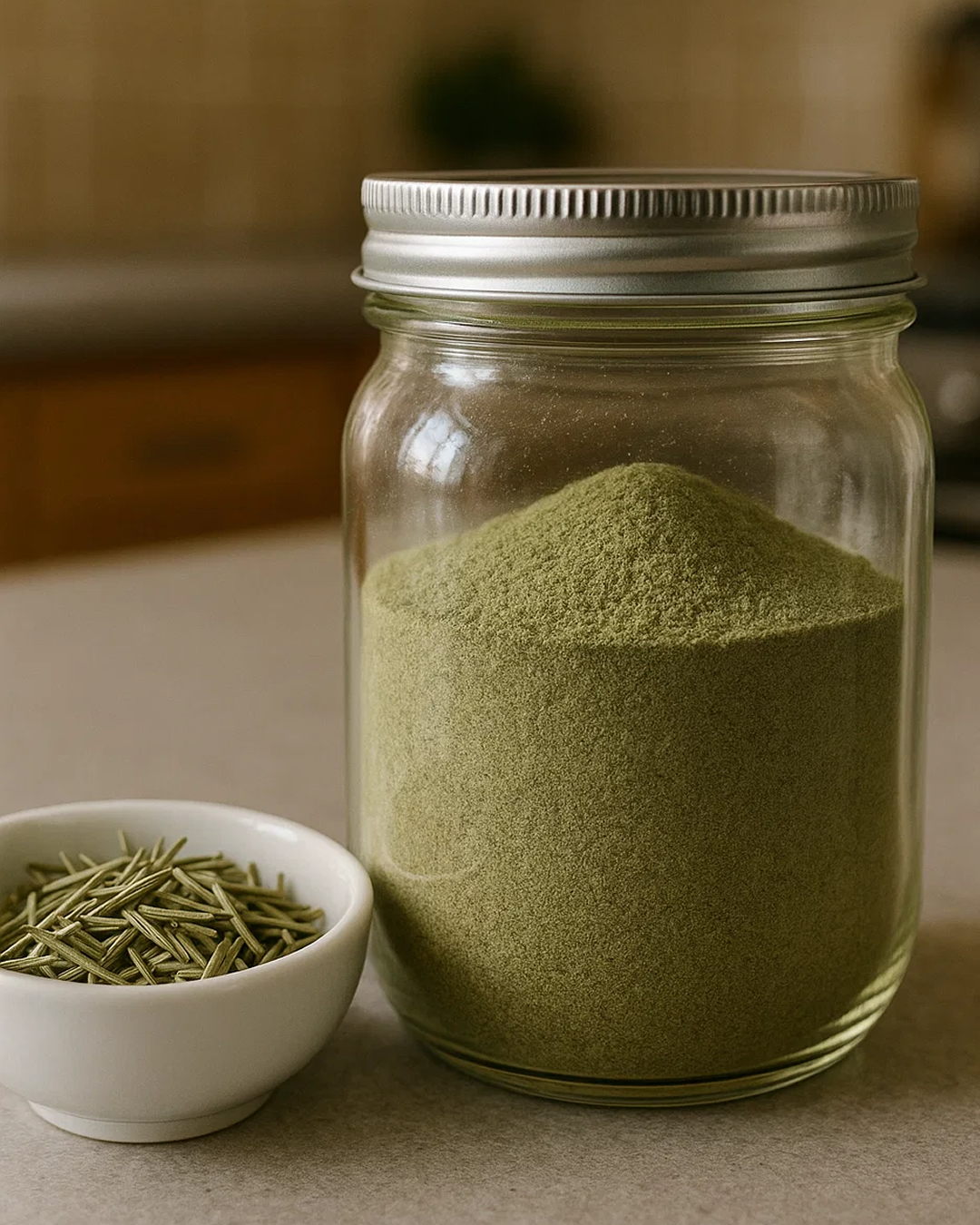 Rozemarijnpoeder is een eenvoudig maar kostbaar ingrediënt: een kleine hoeveelheid is genoeg om gerechten een sterke aroma en aromatische smaak te geven. Het is een geweldige manier om dit mediterrane kruid lang te bewaren en het altijd klaar te hebben om te gebruiken, zonder dat je vers hoeft te bladeren. Het bereiden thuis is eenvoudig, goedkoop en stelt je in staat de kwaliteit te controleren.