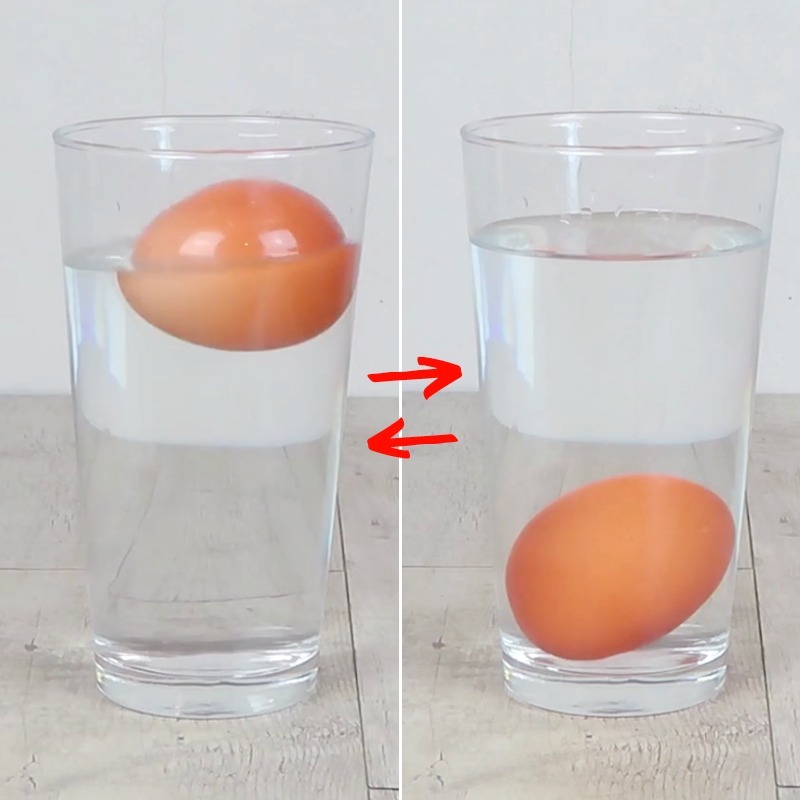 Ken je deze truc? Hier is een snelle en makkelijke manier om te zien of een ei vers of over de datum is: dompel het in een glas water met zout. Als het drijft, is het ei over de datum; als het zinkt, is het vers!