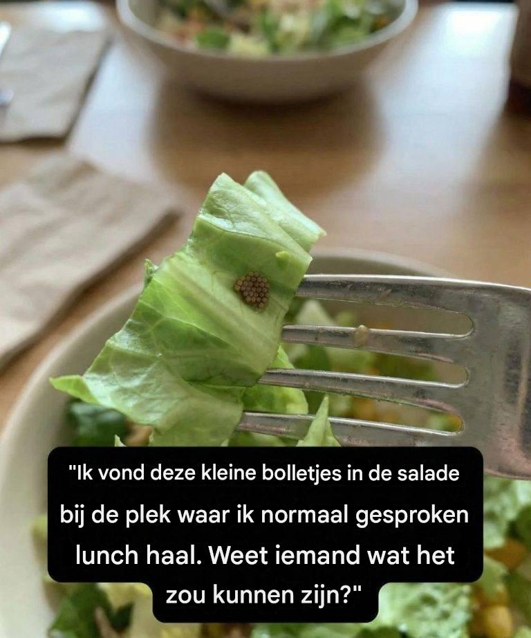 Het begon als een gewone doordeweekse lunch. Ik at een eenvoudige salade van een plek die ik vaak bezoek — vertrouwd, handig en betrouwbaar. Niets aan de maaltijd voelde vreemd totdat ik mijn vork optilde voor de volgende hap en iets kleins zag hangen aan een slablad.