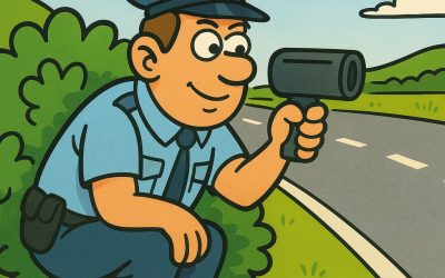 Een politieagent dacht dat hij de perfecte schuilplaats had om snelheidsovertreders te vangen — een klein bochtje op de snelweg…