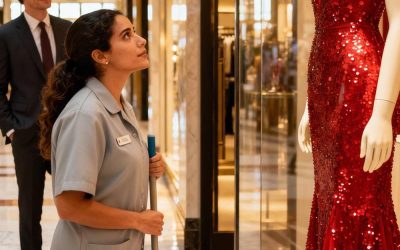 Na zeven jaar scheiding trof hij zijn ex-vrouw aan als schoonmaakster, zwijgend kijkend naar een jurk van een miljoen dollar achter de etalage