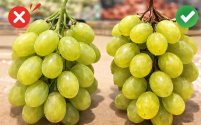 🍇 Kies druiven op hun best rijp ✨ De afbeelding laat een essentieel detail zien om rijpe druiven te herkennen wanneer je ze koopt. Alleen al door naar de steel te kijken, zie je een groot verschil in zoetheid en frisheid.