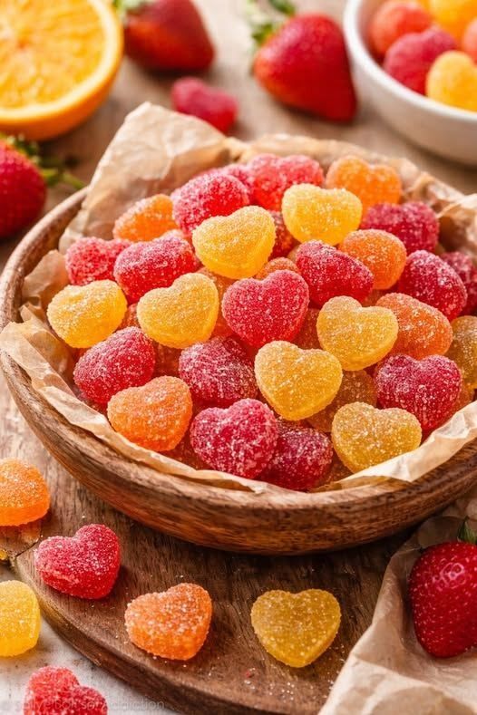 zelfgemaakte gummisnoepjes: Twee druppels gearomatiseerde gelatine,